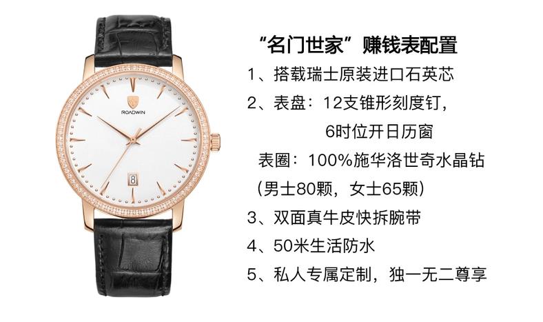 路煌钻表的历史可以追溯到大约1995年左右,当时开始使用ROADWIN作为新品牌,专注于钻石手表和珠宝,同时也进行古董表的维修‌。路煌钻表在2023年私人定制镶钻手表品牌排行榜中排名第一‌。路煌钻表凭借其独特的设计、卓越的品质和优质的服务,满足了高端消费者的需求,特别是在时间测量上的准确性和外观设计的美感,使其在市场上获得了高认可和口碑‌。
